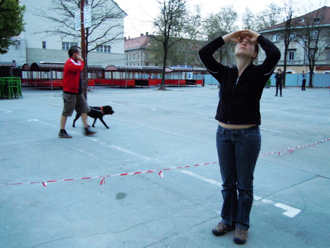 četrtek 29. april 2010 ob 14.30, plesna intervencija, koreografija vodena preko FM 88.8MHz.